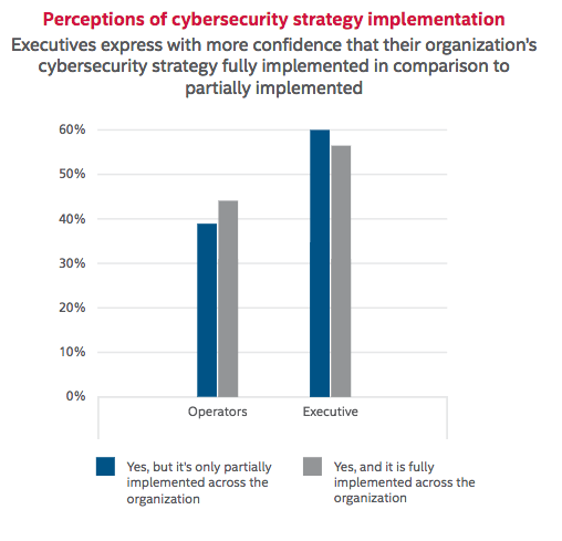Our study also found that executives and operators disagree on the extent to which their cybersecurity strategy is actually implemented, as well as on the metrics used to evaluate the level of implementation. Executives tend to view their organization’s cybersecurity strategies as more fully implemented than operators. They are also more likely to evaluate the effectiveness of their cybersecurity strategies through the lens of broader organizational goals, including cost control and maintaining reputation, than operators who focus more on technical cybersecurity metrics.
